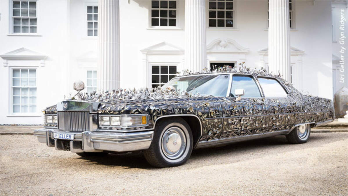 In the first half, Uri Geller, the world's most investigated and celebrated paranormalist, returned to share updates, and talk about his past endeavors and experiences. He recently moved back to Israel and is living in Old Jaffa, where he's purchased a 1,000-year-old building that he's turning into the Uri Geller Museum (related photos). On display will be a giant bent spoon sculpture, his Cadillac which is covered in spoons (pictured above), and items given to him by famous friends including John Lennon, Salvador Dali, and David Bowie. The gift from Lennon is an egg-like object that he told Geller was delivered to him from an alien hand.